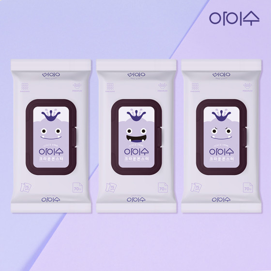 아이수 크라운 몬스터 유아 물티슈 캡형 70매 10개